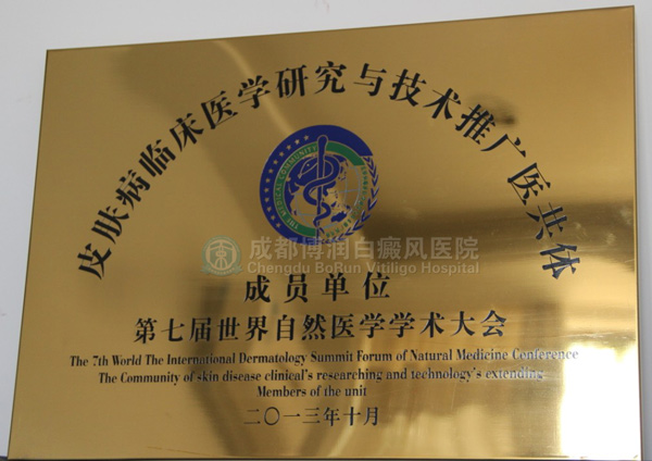 2013年10月24日,第七届世界自然医学学术大会国际皮肤病临床技术新进展高峰论坛在南京隆重召开,会上,作为西南地区参会机构的成都博润白癜风医院,荣膺世界卫生组织、世界自然医学会联合总会共同启动的全球“皮肤病临床医学研究与技术推广医共体”首批成员单位。这是全球皮肤病医学领域高等级荣誉,在国内500多家皮肤病诊疗机构中,入选的仅为25家。